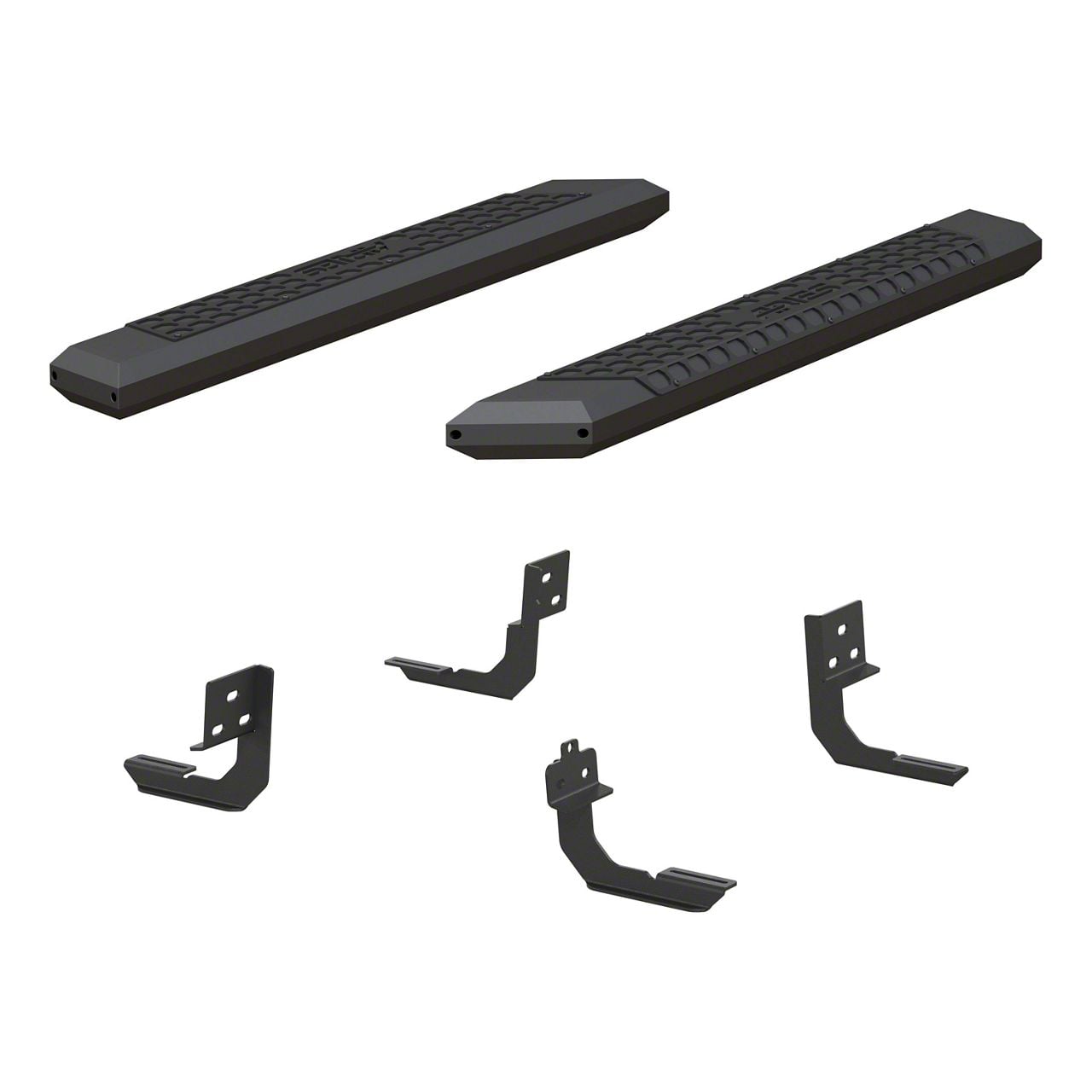 Rugged Finish. These side step bars feature a rugged and durable carbide black powder-coat finish. The step pads have a textured powder-coat finish and the hardware is finished with fade-resistant black chromite. All these durable coatings are added to provide these AdvantEDGE step bars a maximum protection against corrosion and other elements.