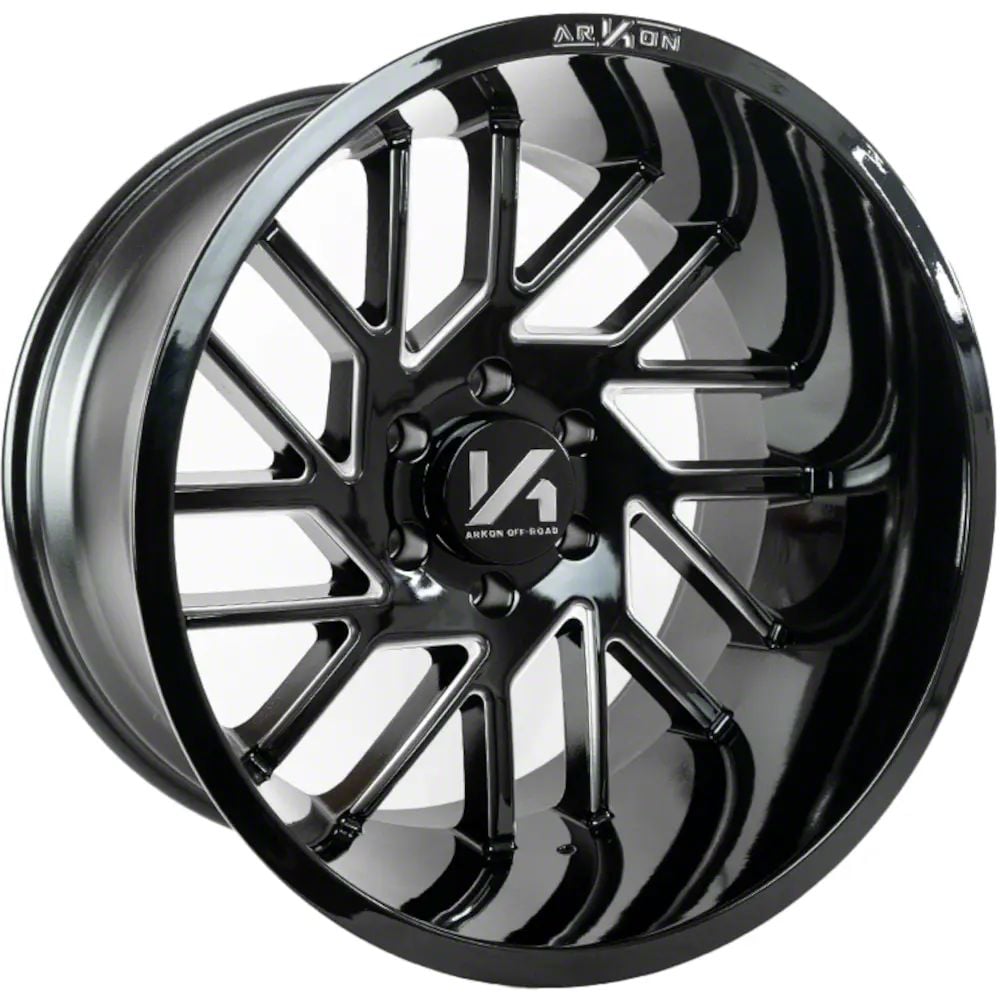 Arkon Off-Road Mandela Gloss Black Milled 8-Lug 4-Wheel Kit; 20x12; -51mm Offset exudes sophistication with its finish, offering a sleek and modern appeal to any vehicle it adorns. The design is meticulously crafted to enhance the aesthetic of your vehicle, giving it a distinctive and upscale look. Perfect for those seeking to elevate their vehicle's style, this wheel blends seamlessly with both contemporary and classic vehicle designs, making it a versatile choice for a wide range of vehicles. Its robust construction ensures durability, making it a reliable choice for drivers who value both style and quality.