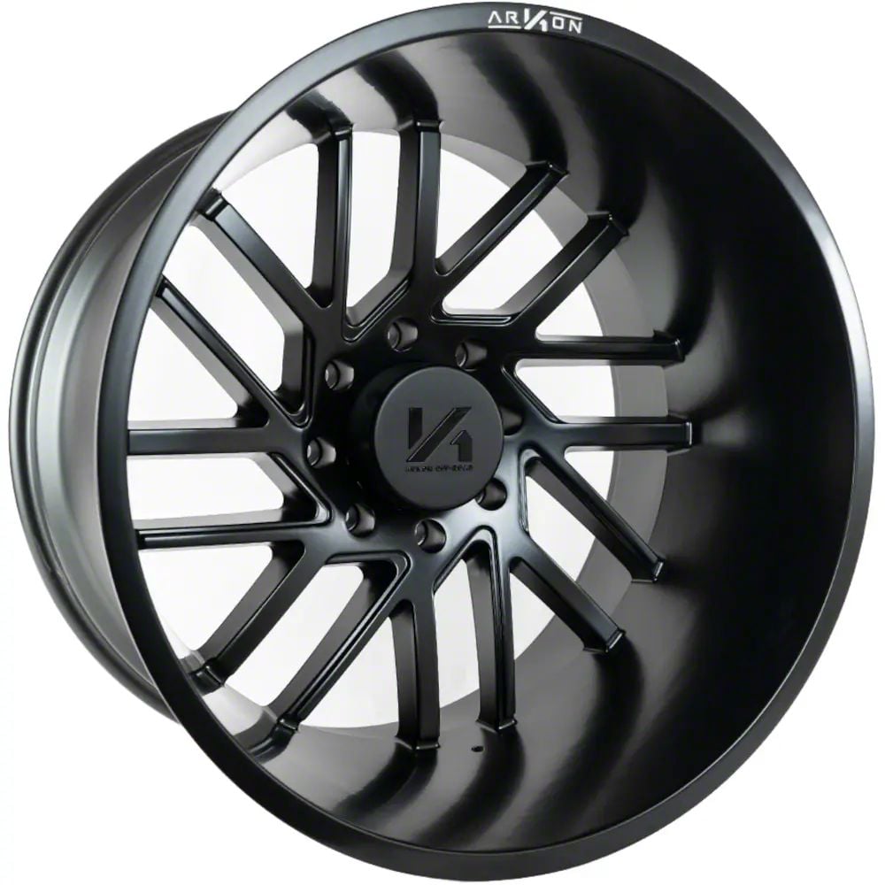 Arkon Off-Road Mandela Satin Black 8-Lug 4-Wheel Kit; 26x14; -81mm Offset. The Arkon Off-Road Mandela Satin Black 8-Lug 4-Wheel Kit offers a striking balance of style and refinement. Its unique design accentuates the vehicle's aesthetic, while the premium construction underscores its robust nature. This wheel is a perfect choice for those seeking both elegance and a strong visual statement.
