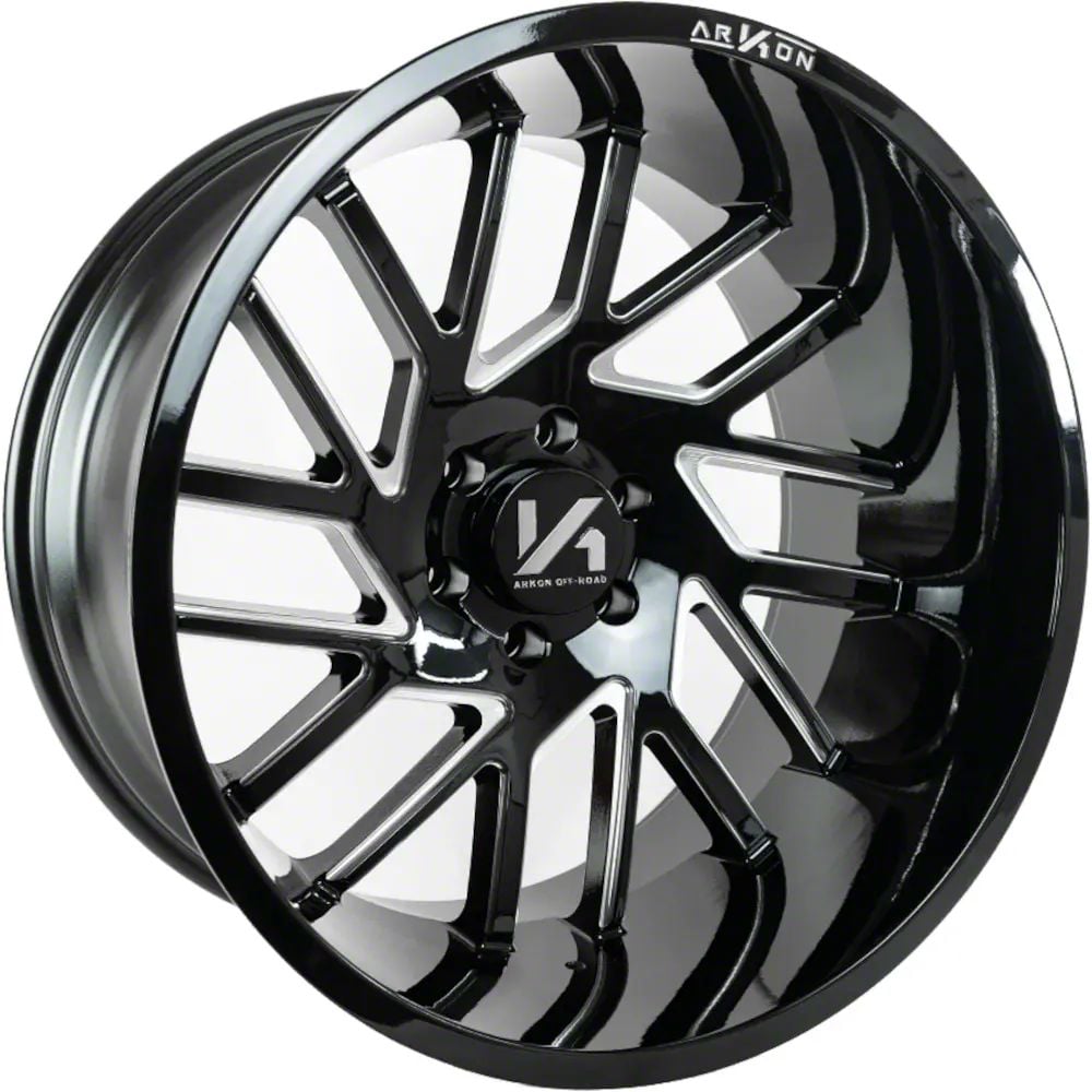 Arkon Off-Road Mandela Gloss Black Milled 8-Lug 4-Wheel Kit; 22x12; -51mm Offset. The Arkon Off-Road Mandela Gloss Black Milled 8-Lug 4-Wheel Kit offers a striking balance of style and refinement. Its unique design accentuates the vehicle's aesthetic, while the premium construction underscores its robust nature. This wheel is a perfect choice for those seeking both elegance and a strong visual statement.