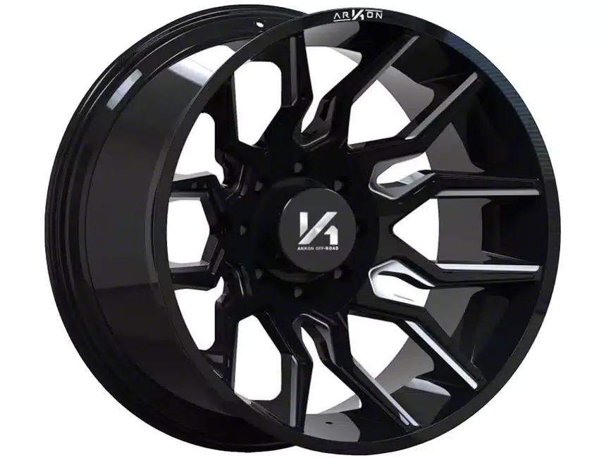 The 20x12 Arkon Off-Road Roosevelt Gloss Black Milled 8-Lug Wheel is given a gloss black finish to keep the wheel looking as sharp as its design. This wheel's milled steel accents are really where it shines through, and quite literally. It makes the split section of the spokes pop along the faux beadlock.