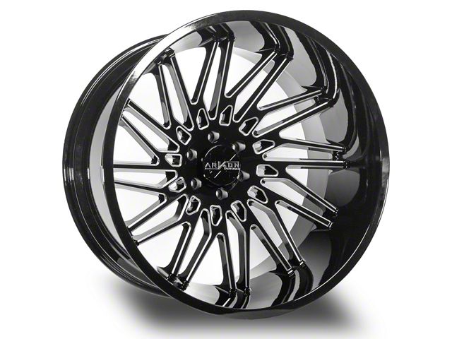 Arkon Off-Road Apollo Gloss Black Milled 8-Lug Wheel; 24x14; -81mm Offset The Arkon Off-Road Apollo Gloss Black Milled 8-Lug Wheel combines a sleek, sophisticated design with premium construction that enhances the visual appeal and complements a wide range of vehicle styles. This wheel is perfect for those seeking to make a bold statement while maintaining elegance and robustness.