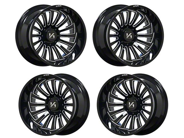 Arkon Off-Road Alexander Gloss Black with Milled Edges 8-Lug 4-Wheel Kit; 22x12; -51mm Offset. The Arkon Off-Road Alexander Gloss Black with Milled Edges 8-Lug 4-Wheel Kit offers a striking balance of style and refinement. Its unique design accentuates the vehicle's aesthetic, while the premium construction underscores its robust nature. This wheel is a perfect choice for those seeking both elegance and a strong visual statement.