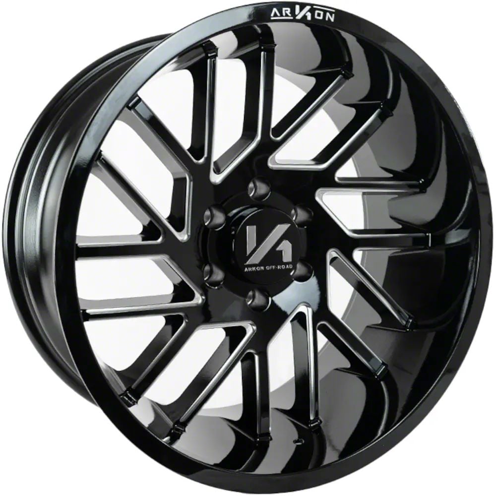 Arkon Off-Road Mandela Gloss Black Milled 8-Lug 4-Wheel Kit; 20x10; -25mm Offset exudes sophistication with its finish, offering a sleek and modern appeal to any vehicle it adorns. The design is meticulously crafted to enhance the aesthetic of your vehicle, giving it a distinctive and upscale look. Perfect for those seeking to elevate their vehicle's style, this wheel blends seamlessly with both contemporary and classic vehicle designs, making it a versatile choice for a wide range of vehicles. Its robust construction ensures durability, making it a reliable choice for drivers who value both style and quality.