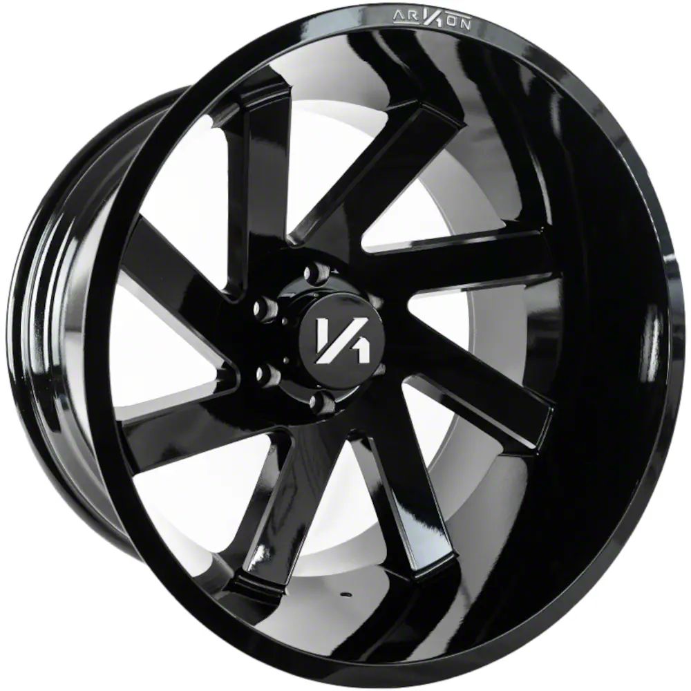 Arkon Off-Road Lincoln Gloss Black Milled 8-Lug 4-Wheel Kit; 22x14; -81mm Offset. The Arkon Off-Road Lincoln Gloss Black Milled 8-Lug 4-Wheel Kit offers a striking balance of style and refinement. Its unique design accentuates the vehicle's aesthetic, while the premium construction underscores its robust nature. This wheel is a perfect choice for those seeking both elegance and a strong visual statement.