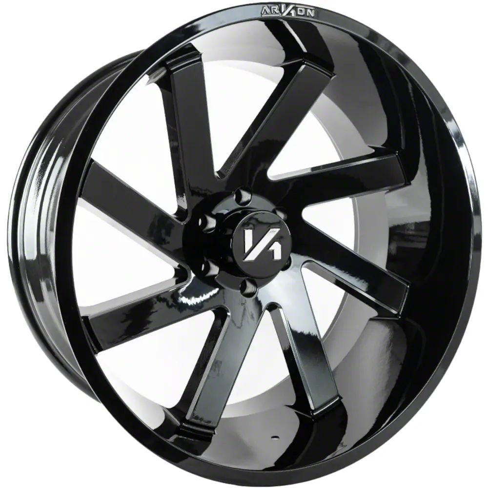 Arkon Off-Road Lincoln Gloss Black Milled 8-Lug 4-Wheel Kit; 24x12; -51mm Offset. The Arkon Off-Road Lincoln Gloss Black Milled 8-Lug 4-Wheel Kit offers a striking balance of style and refinement. Its unique design accentuates the vehicle's aesthetic, while the premium construction underscores its robust nature. This wheel is a perfect choice for those seeking both elegance and a strong visual statement.