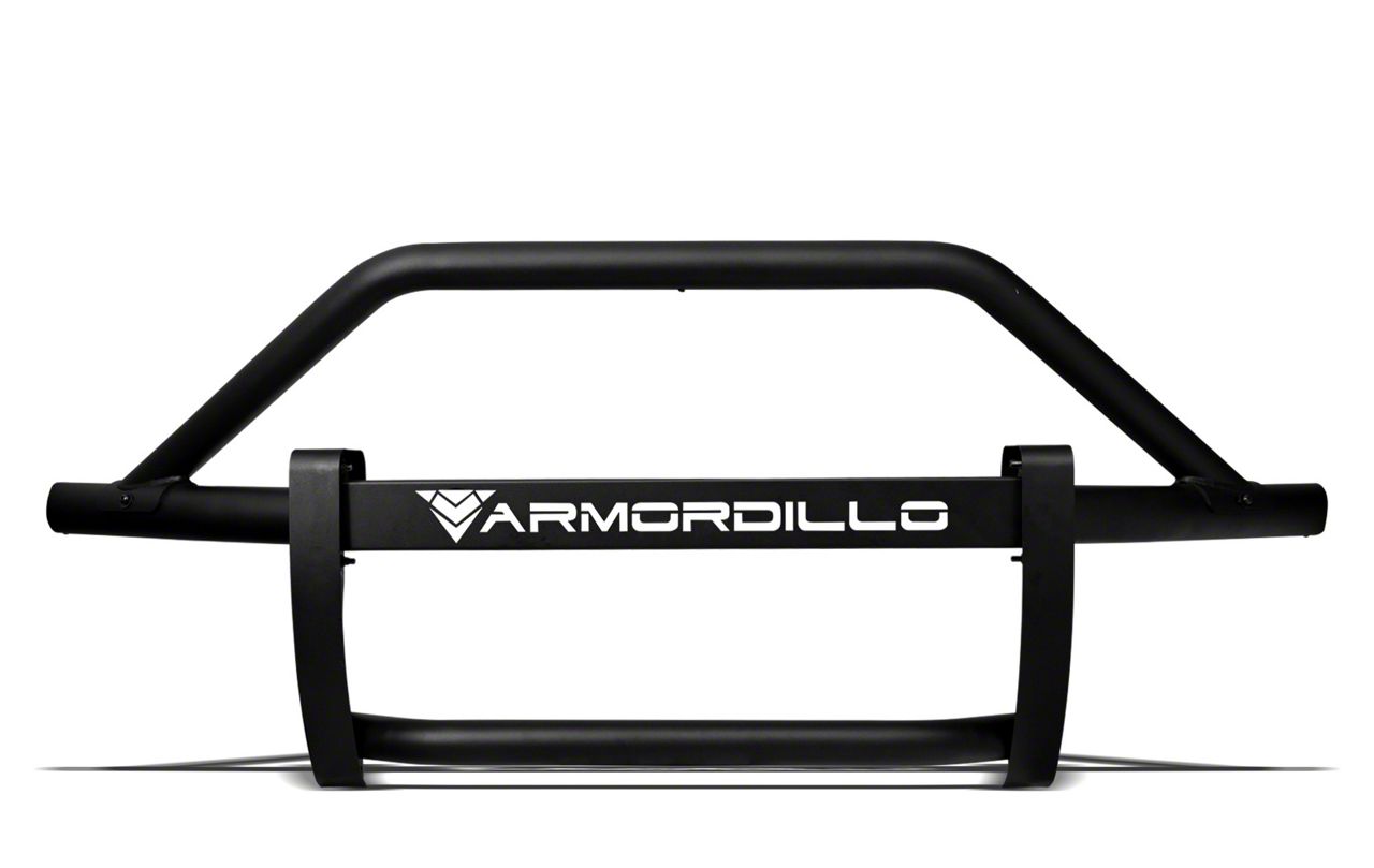 Stylish and Functional. The Armordillo AR Pre-Runner Grille Guard, finished in a sleek matte black powder coat, provides an extra layer of protection for your vehicle's grille, headlights, and bumper. This robust guard complements the aggressive look of your F-150 while offering practical benefits for everyday driving and off-road adventures.