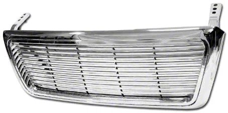 Horizontal Style Upper Replacement Grille. The Horizontal Style Upper Replacement Grille in chrome enhances the front of the vehicle with a sleek, distinctive design that stands out. It replaces the original grille to maintain the vehicle’s identity or customize its look with a modern, aggressive appearance. This grille protects the radiator and engine compartment while allowing proper airflow.