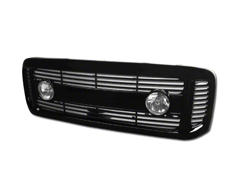 Application. Armordillo Horizontal Upper Replacement Grille in Gloss Black fits 1999-2004 F-250 Super Duty models.