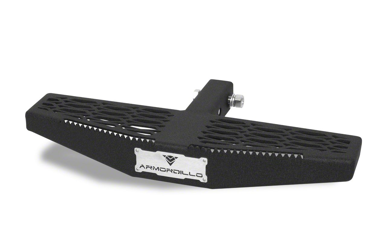 Protect Your Bumper. The Armordillo 2-Inch Receiver Hitch TF Style Step serves a dual purpose, acting not only as a convenient step but also as a formidable shield for your vehicle's rear bumper. In the chaotic environment of parking lots and tight spaces, minor impacts and collisions are an unfortunate reality. This receiver hitch step acts as a buffer zone, absorbing the brunt of these impacts and preventing costly damage to your bumper.
