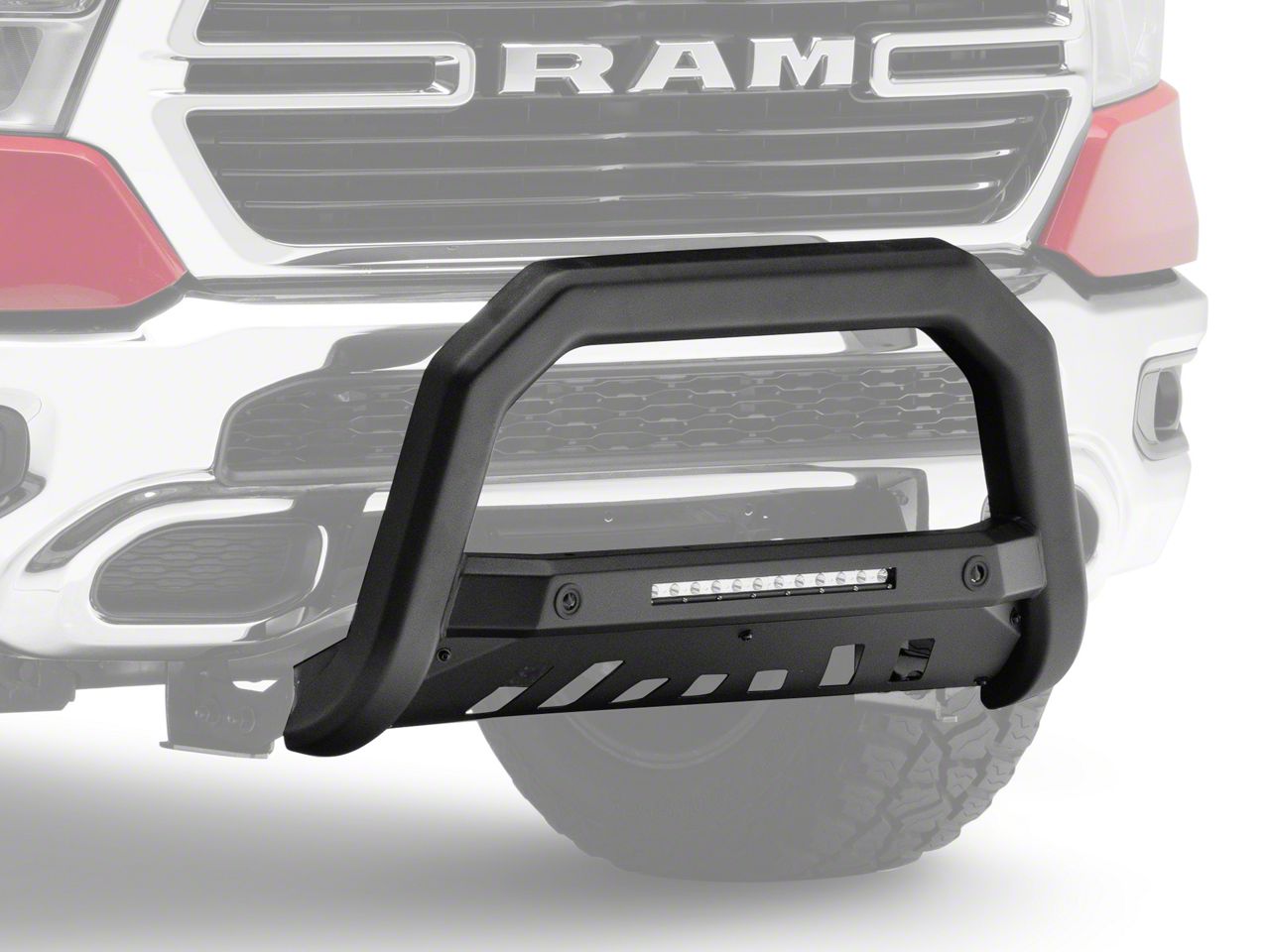 Built-In Features. And if that wasn't enough, it also has a built-in LED light bar with a switch and harness. So, whatever nighttime adventures you have planned, you'll be well-equipped to tackle them head-on. But best of all, this bad boy is specifically designed to fit all RAM 1500s with parking sensors (excluding TRX models), so, rest assured it'll provide the perfect fit. Why wait? Get protected today with the Armordillo AR-T Series Bull Bar.