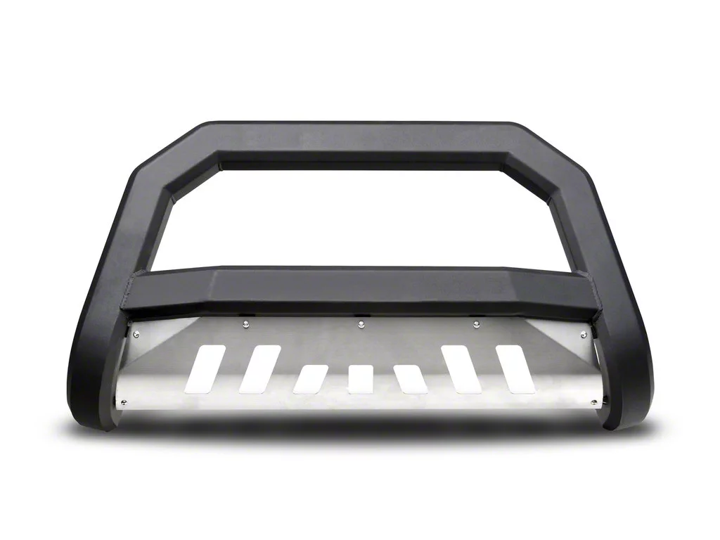 Drive in Style. This Bumper Push Bar Bull Guard with Aluminum Skid Plate from the AR Series is a perfect choice for a drive without compromise. With this piece, you can protect the front-end of your rig while still showing off your stylish front grille. The Armordillo AR series Bull Bars’ angular design provides rigidity, elegance, and high-level front-end protection without hiding your grille.