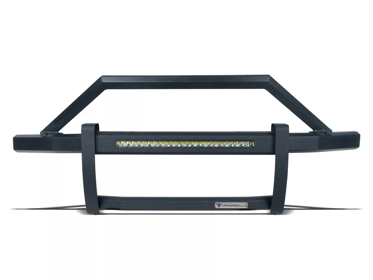 Construction and Appearance. Crafted from heavy-duty steel, the Armordillo ARX Pre-Runner Guard features a durable matte black powder-coated finish that resists corrosion and abrasions. The angular design gives your truck a commanding off-road presence, with reinforced tubing that ensures long-lasting performance.