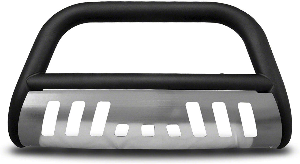 Seamless Mandrel-Bent Construction. Created with maximum durability in mind, this bull guard’s mandrel-bent construction provides extremely strong impact resistance. Paired with an aluminum skid plate, any flying rocks or debris are rendered harmless. With a matte black finish, this bull guard not only delivers safety, but style as well.