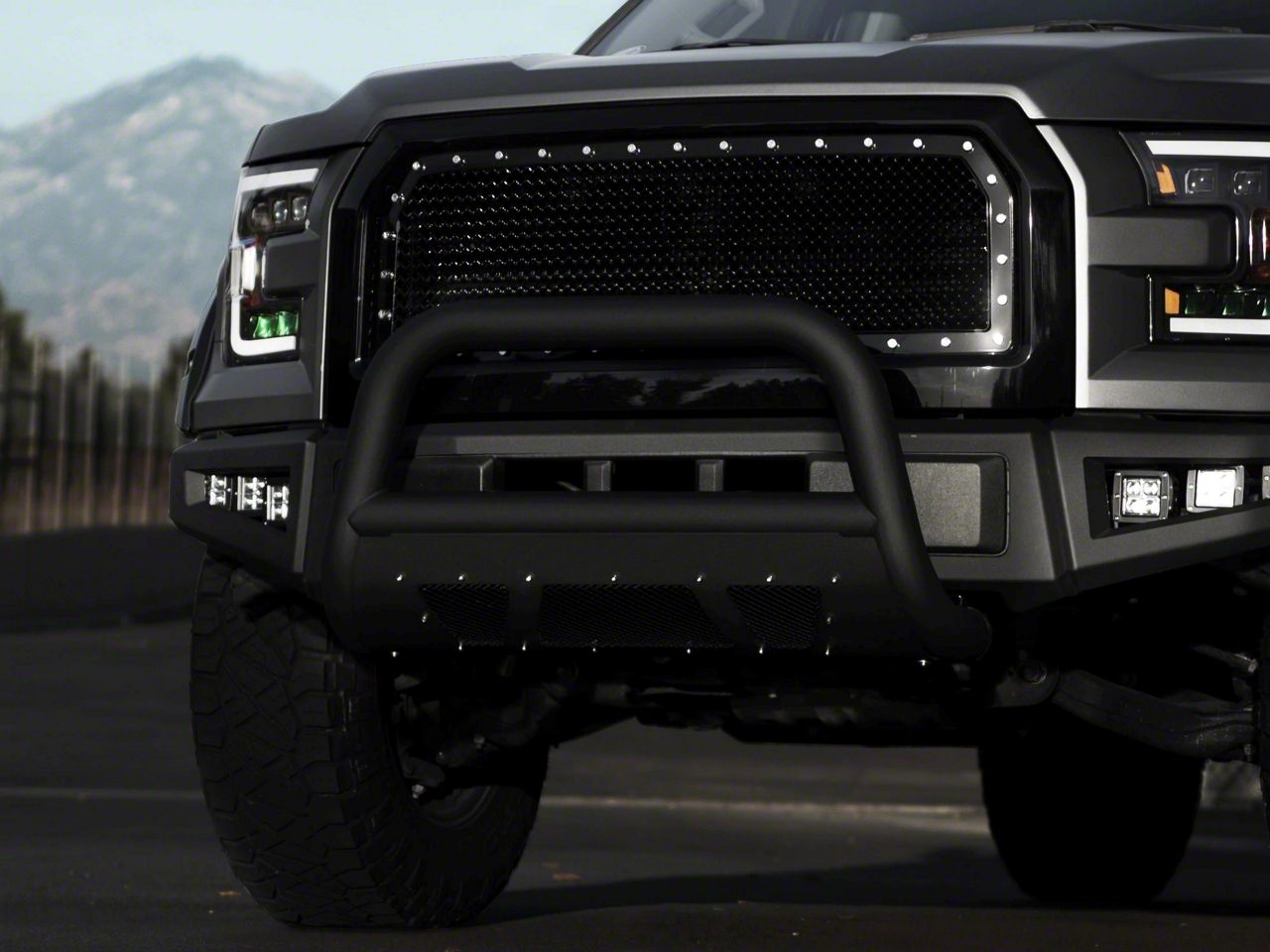 Construction and Appearance. The Armordillo MS Series Bull Bar features a mesh style skid plate that ensures your vehicle's front end is protected without hiding the front grille or bumper. The matte black finish gives it a modern and rugged appearance, perfect for enhancing the look of your truck. This bull bar is designed to not restrict airflow to the radiator or engine, maintaining your vehicle’s performance and efficiency.