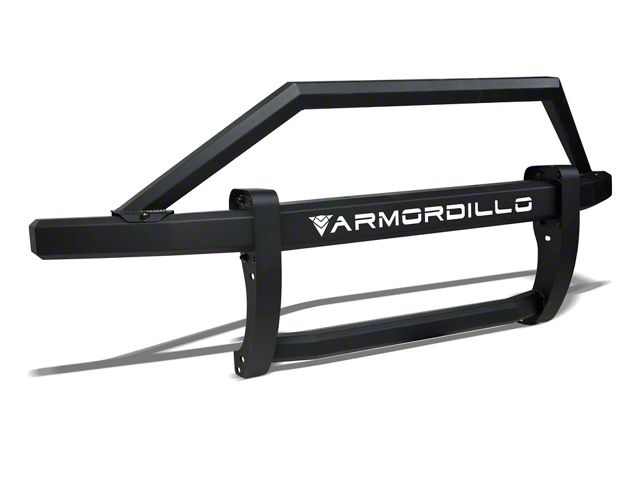 Versatile Styling. If you are looking to guard and style your Silverado without fully covering up your gear, then this Armordillo AR2 Pre-Runner Grille Guard; Matte Black is for you. It features a full-length coverage of the facade of your car but leaves room for addition hardware to be installed. The wide opening and thinner frame gives way to your headlights and additional accessories, giving you more safeguarding but without reducing the functionality of your vehicle.