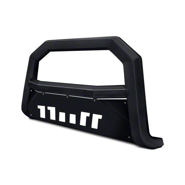 Protection and Aesthetics. The Armordillo Rayden Series Bull Bar in Matte Blac is an exceptional front-end protection solution for your vehicle. Built for defense, this bull bar comes with a laser-cut skid plate, safeguarding your vehicle from minor collisions, debris, and other impacts. Its stylish angled design adds a touch of elegance to your vehicle's appearance.