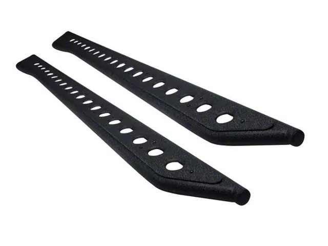 Tubular Steel Construction. These Armordillo RS Series Running Boards feature a dimpled steel top step plate with the frame being manufactured from heavy duty steel tubing for superior strength and rigidity. These Running Boards are them completed in a black powder coated finish for aggressive good looks and long lasting corrosion resistance.