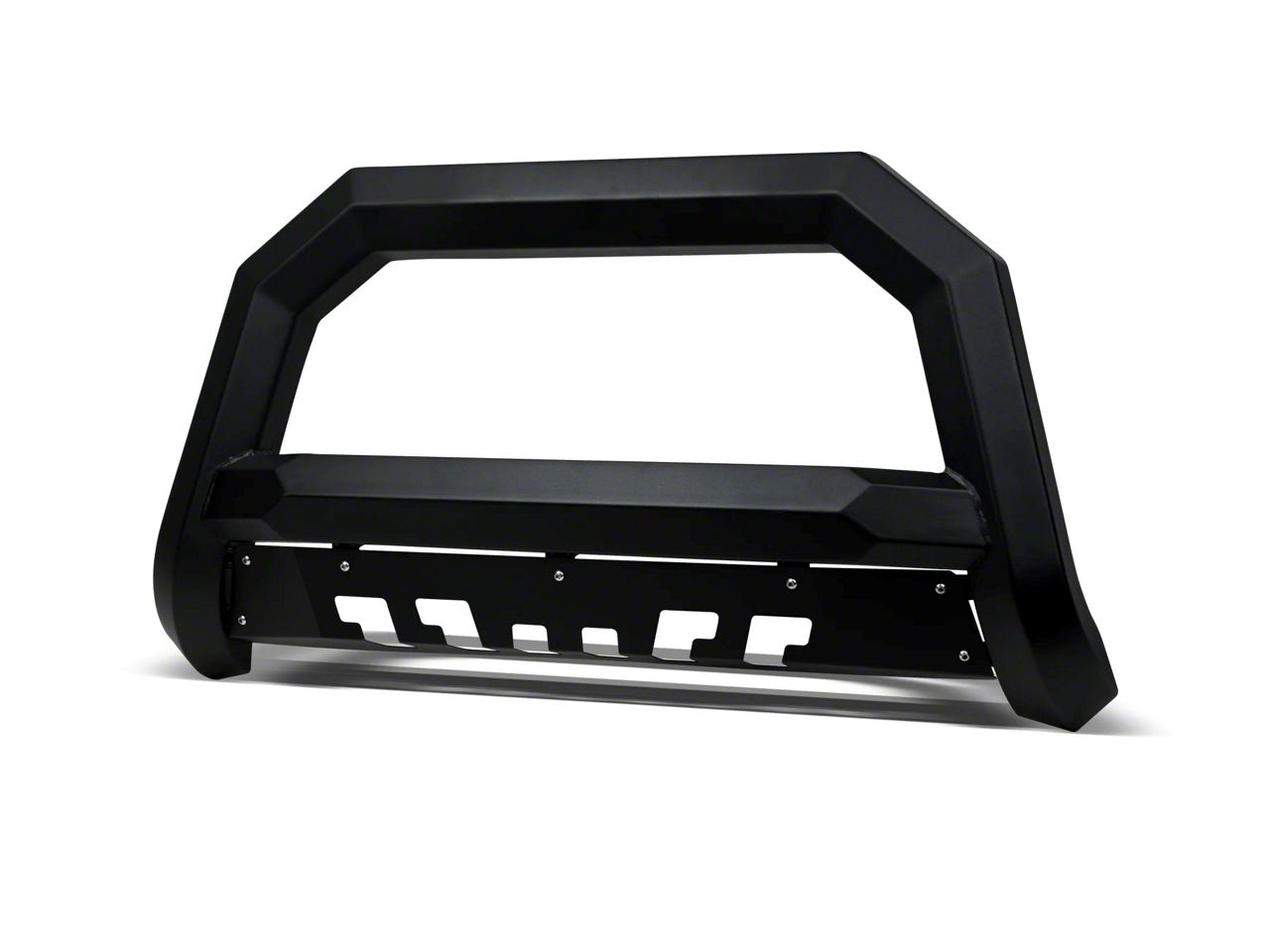 Construction and Appearance. This bull bar features a unique multifaceted design and a laser-cut skid plate. Manufactured with the latest forge-pressed technology, it boasts a three-stage processed matte black powder-coat finish for durability and style.