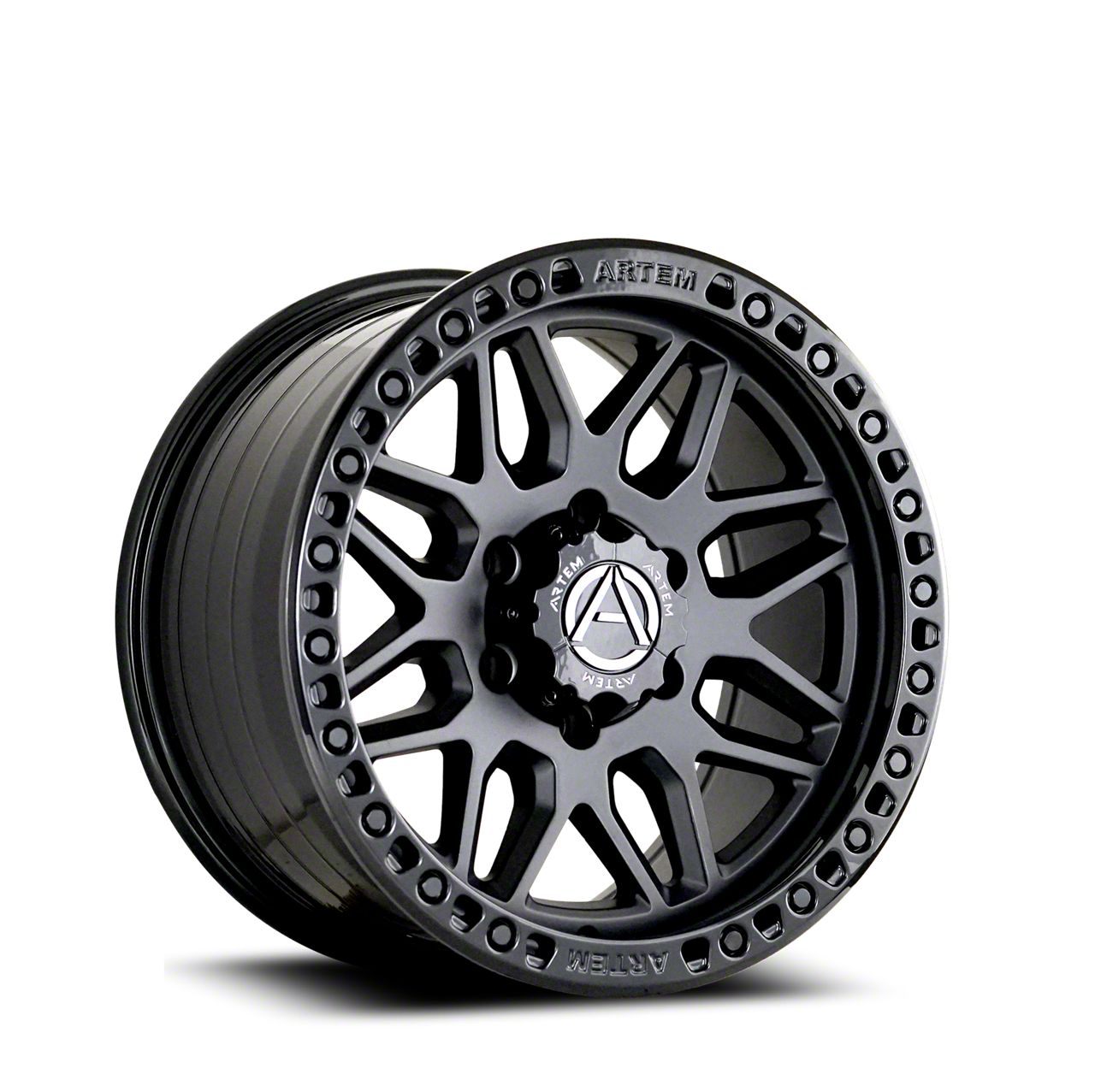 Artem GRIMLOCK Satin Black Face with Gloss Black Ring 6-Lug Wheel; 20x9; -12mm Offset This wheel brings a commanding presence with its distinct design, making it a bold choice for enthusiasts looking to upgrade their vehicle’s look. The premium finish and attention to detail reflect the high standards of Artem, giving any vehicle a modern and aggressive edge. Its styling pairs seamlessly with rugged builds or sleek street setups alike, elevating curb appeal with ease.