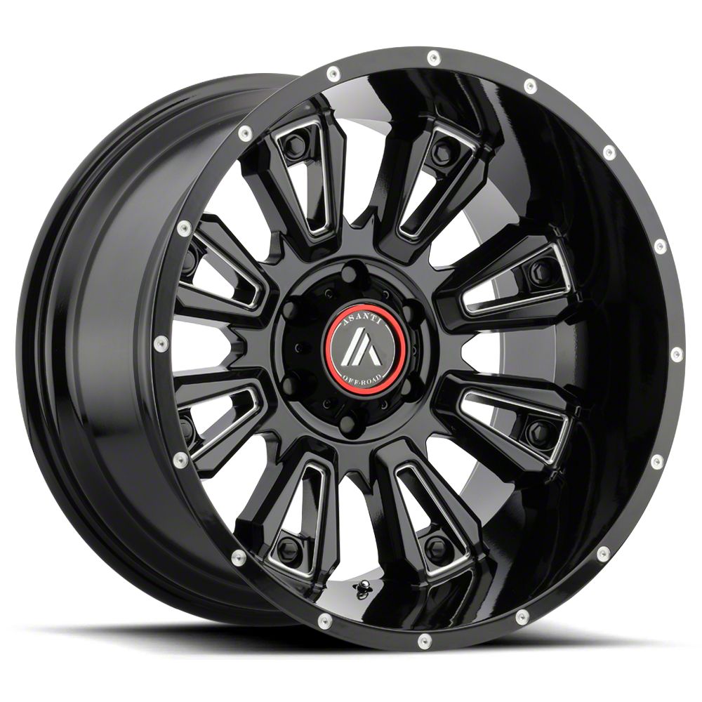 The 20x9 Asanti Blackhawk Gloss Black Milled 6-Lug Wheel is completed in a high-quality gloss black finish with steel milled accents that will be the envy of everyone. For added protection and good looks, there is a durable clear coat that withstands the rigors of everyday driving,