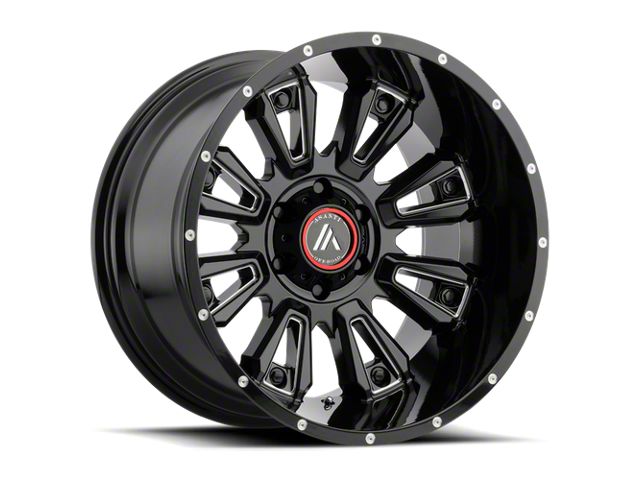 The 20x9 Asanti Blackhawk Gloss Black Milled 6-Lug Wheel; ; -12mm Offset is given a gloss black finish to keep your wheel looking as sharp as its design. The wheel's milled steel accents are where it really shines through, literally.