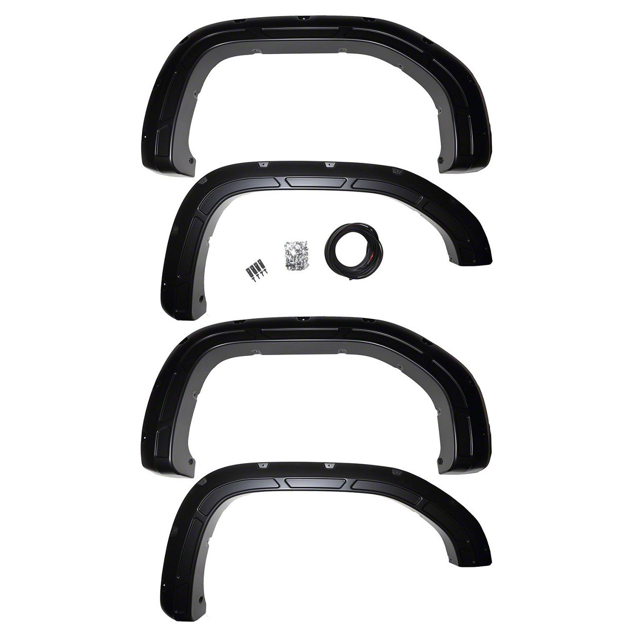 Classic Street Design. Get a stronger feel of your Sierra and guard our paintwork with this Rough Country Defender Fender Flares; OE Black. It features a strong bold look with an increased wheel coverage of 2-inches, keeping dirt and rubble away from your sides and under your vehicle where they belong.