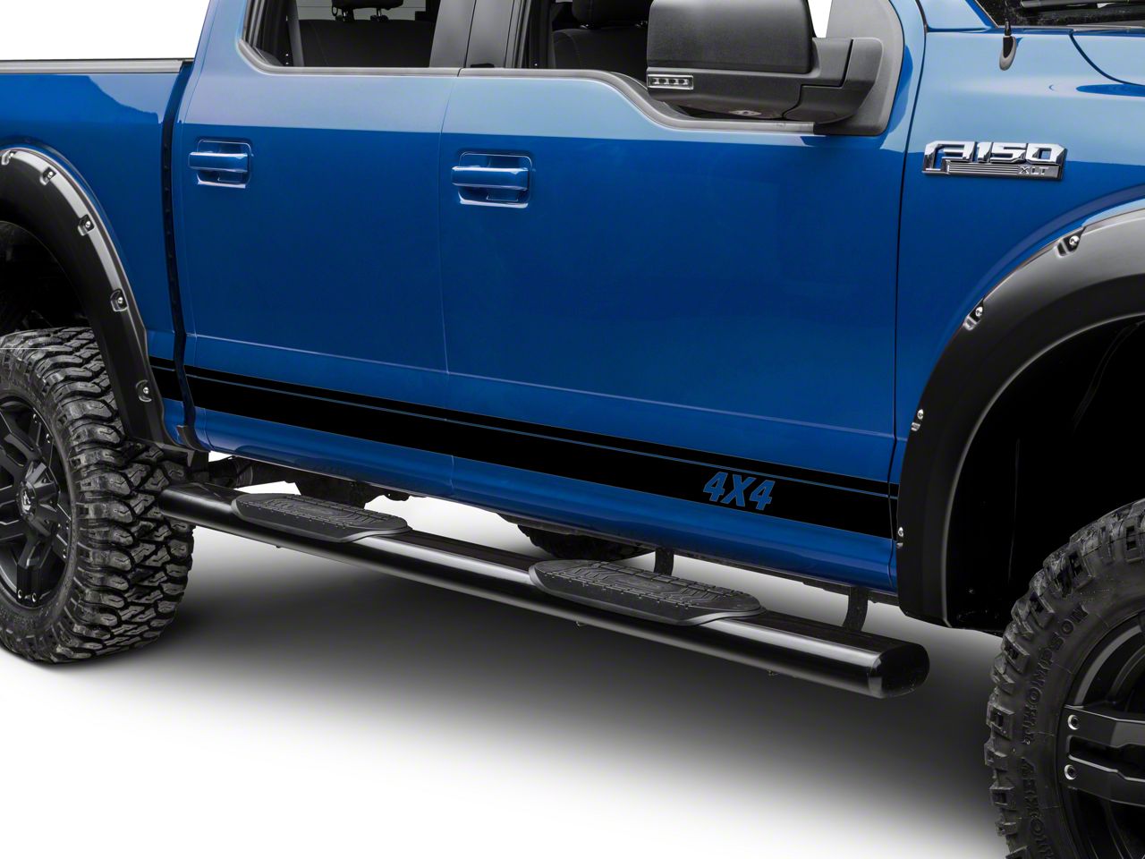 Custom Styling. Are you looking to add some custom styling to your F-250 with a simple visual modification? If so, then these Black Rocker Stripes are for you. These gloss black stripes with a 4x4 logo are designed to be applied to the rocker panel area between the wheel wells. These stripes will look great on any model of F-250.