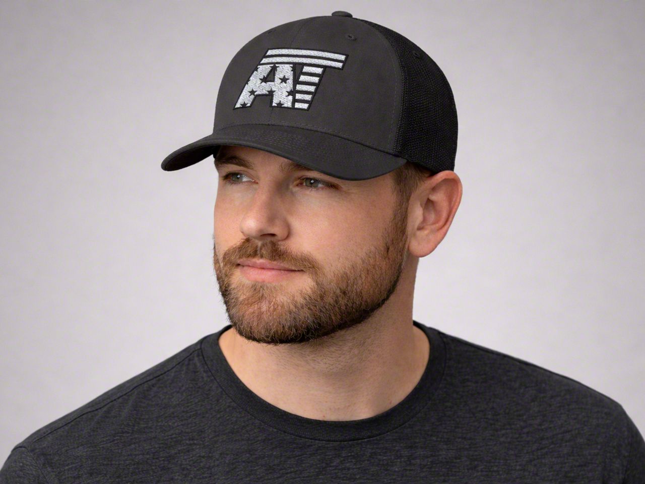 Finish your look with a clean, classic staple in the AT Icon Hat – Gray/Black. Built on the timeless Yupoong 6606 retro trucker silhouette, this cap pairs a structured front with a breathable mesh back for all-day comfort. The black-and-white colorway keeps things sharp and versatile, making it an easy go-to whether you’re out on the road, in the garage, or keeping it casual.