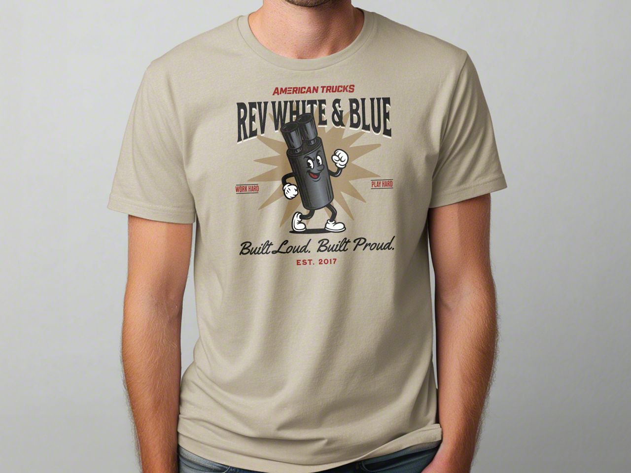 Easygoing and built for everyday wear, the AT Rev White & Blue T-Shirt – Sand delivers a soft, lightweight feel with a clean, relaxed look. Crafted on the Gildan Softstyle base, this tee offers dependable comfort and durability while keeping things effortless—perfect for warm days, casual outings, or letting the design stand out against the sand-toned backdrop.