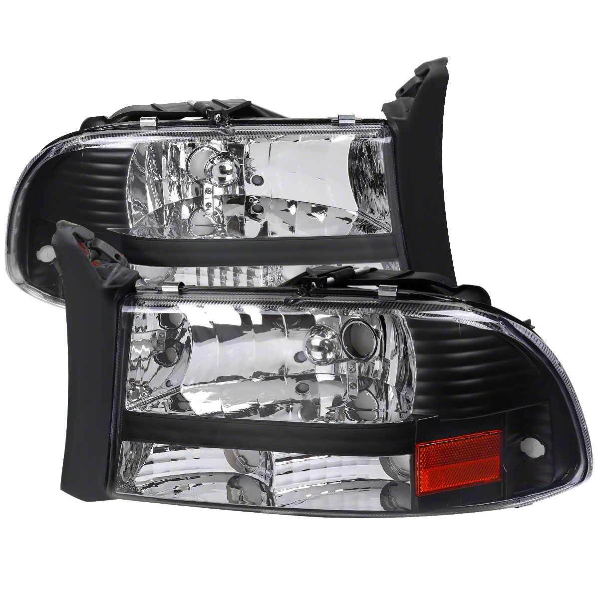 Factory Style Crystal Headlights with Amber Reflector; Matte Black Housing; Clear Lens (97-04 Dakota)Find parts that fit my vehicle