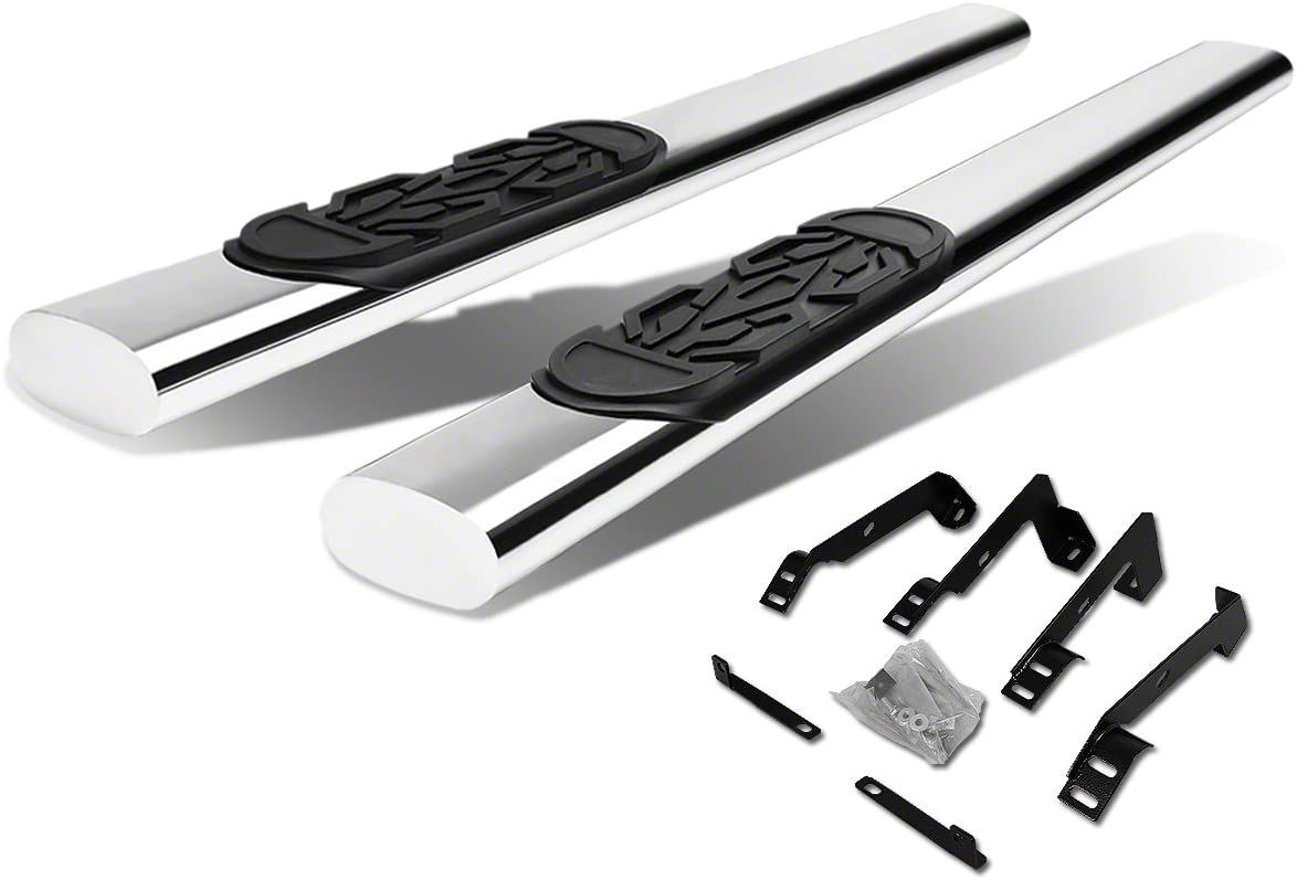 Construction and Appearance. These side step bars are made from rust-resistant mild steel and 6-inch diameter oval steel tubing. There are slip-resistant pads to improve safety. The steps feature a mirror-polished finish that looks amazing and wards off corrosion.