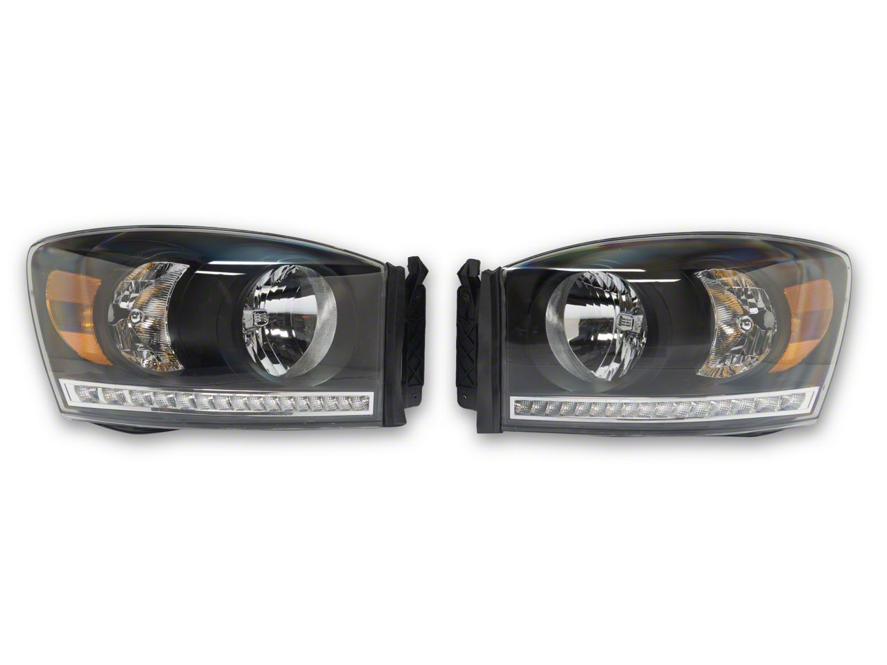 LED DRL Headlights with Amber Corner Lights; Black Housing; Clear Lens (06-08 RAM 1500)Find parts that fit my vehicle