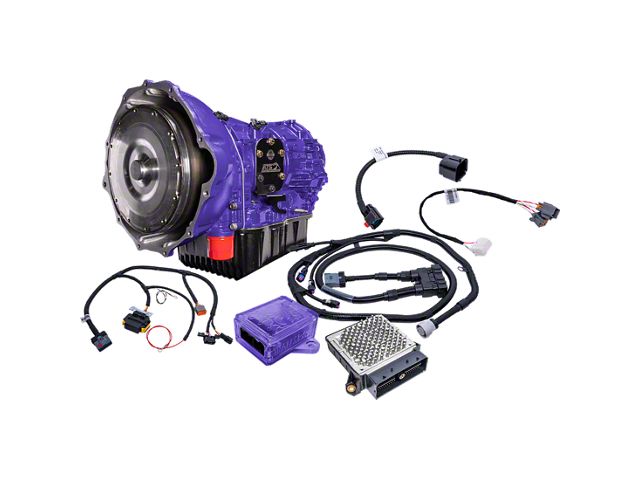 Allison 6 Speed Transmission with Cast Cummins Bell Housing and Extension Housing Billet Five Star Torque Converter ATS Deep Pans Transmission Oil Pan Translator Transmission Controller with Plug and Play Wiring Harness Transfer Case Adapter Kit Shift Linkage Kit Dipstick Tube Cooler Adapter Lines and Fittings Transmission Mount