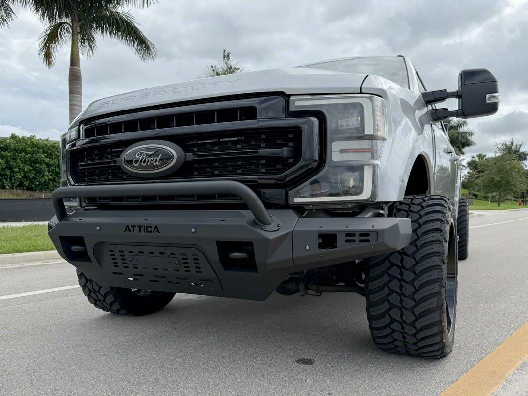 Application. This Attica 4x4 Terra Series Front Bumper; Textured Black fits 2023-2026 F-250 Super Duty models.