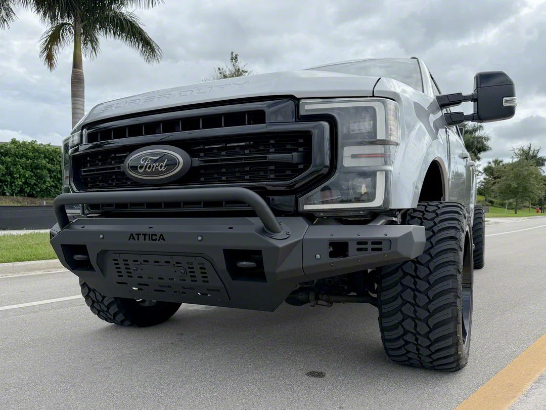 Application. This Attica 4x4 Terra Series Front Bumper; Textured Black fits 2023–2026 F-350 Super Duty models.