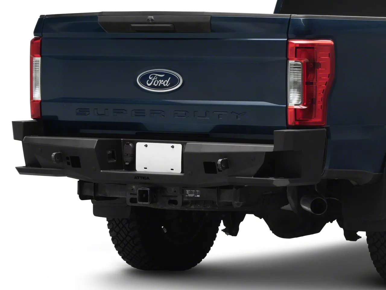 Off-Road Ready Rear Protection for the Road. The Attica 4x4 Terra Series Rear Bumper offers heavy-duty protection for 2017-2026 Ford F-350 Super Duty trucks tackling trails, towing loads, or just handling tough environments. With a full-width design, this bumper provides total coverage while also featuring aggressive off-road styling that enhances the truck’s appearance. It's ready for both work and adventure.
