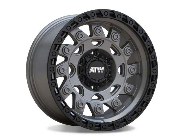 ATW Off-Road Wheels Congo Sand Gunmetal with Black Lip 6-Lug Wheel; 17x9; 0mm Offset exudes sophistication with its finish, offering a sleek and modern appeal to any vehicle it adorns. The design is meticulously crafted to enhance the aesthetic of your vehicle, giving it a distinctive and upscale look. Perfect for those seeking to elevate their vehicle's style, this wheel blends seamlessly with both contemporary and classic vehicle designs, making it a versatile choice for a wide range of vehicles. Its robust construction ensures durability, making it a reliable choice for drivers who value both style and quality.