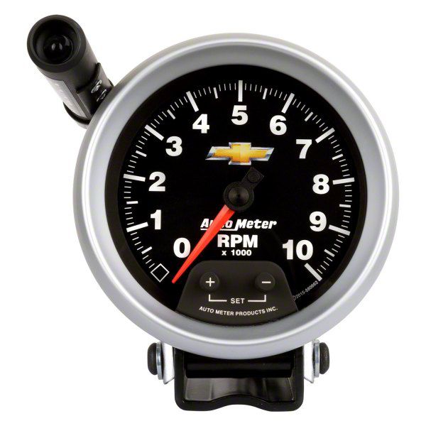 Auto Meter Chevy Gold Bowtie Series 3-3/4-Inch Pedestal Tachometer with Shift Light; 0-10000 RPM (Universal; Some Adaptation May Be Required)
