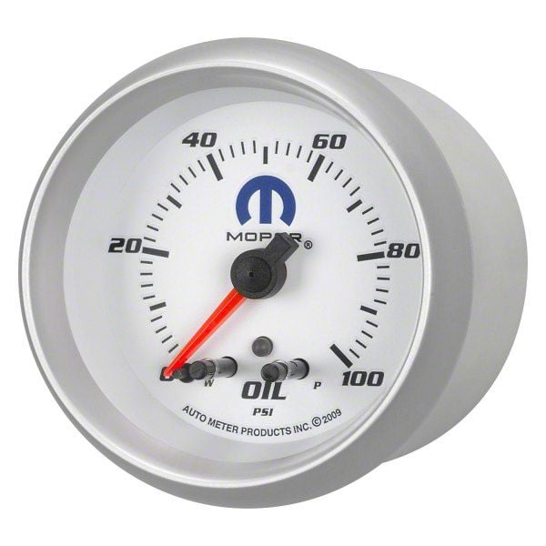 Description. The life blood of your engine, a lack of oil pressure is one of the most catastrophic scenarios that can happen. Knowing the precise pressure is critical to both its longevity and performance, as well as your peace of mind. AutoMeter’s Digital Stepper Motor Oil Pressure Gauge utilizes the most advanced technology on the market to deliver accuracy and durability you won’t find anywhere else. Our advanced 1/8” NPT solid state pressure transducer (included) provides the best possible measurements with unparalleled resistance to vibration and heat. A direct plug in wiring harness is also included for ease of installation and data logging is available thanks to a .5 - 4.5v analog output. Officially licensed Mopar product.