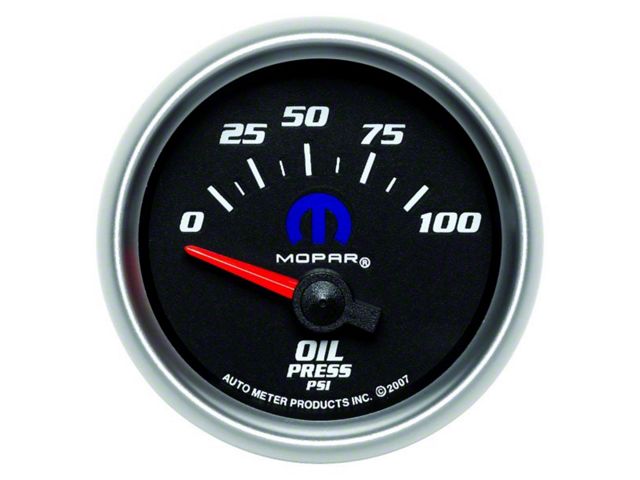 Description. Quite possibly the most critical vital to monitor, engine oil pressure can mean the difference between making it home and needing to replace the engine. The patented air core meter movement provides the durability and accuracy that you expect from the AutoMeter name. Throughout 57 years of building the world’s best competition instruments, this meter movement has been the engine powering the machine that sets the benchmark. A single wire, 1/8” NPT oil pressure sender is included. Officially licensed Mopar product.