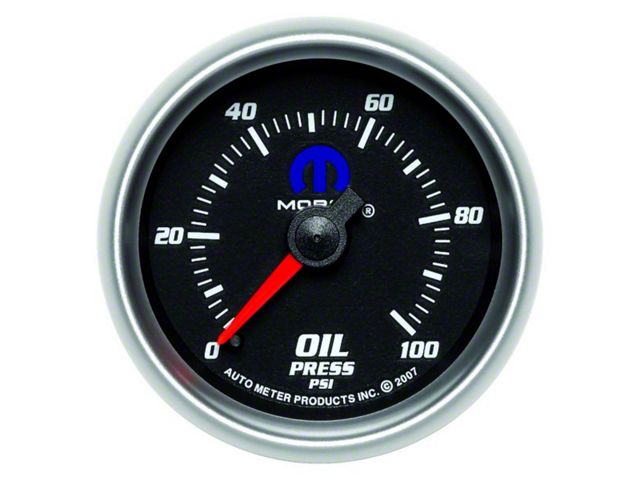 Description. The life blood of your engine, a lack of oil pressure is one of the most catastrophic scenarios that can happen. Knowing the precise pressure is critical to both its longevity and performance, as well as your peace of mind. AutoMeter’s Mechanical Oil Pressure Gauge utilizes the most advanced bourdon tube meter movement on the market to deliver accuracy and durability you won’t find anywhere else. A simple 1/8” NPT connection makes installation easy. Fittings and nylon tube are included and optional braided stainless line kits are available. Officially licensed Mopar product.