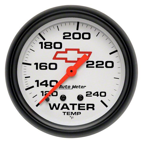 Auto Meter Chevy White Series 2-5/8-Inch Water Temperature Gauge; 120-240 Fahrenheit; Mechanical (Universal; Some Adaptation May Be Required)