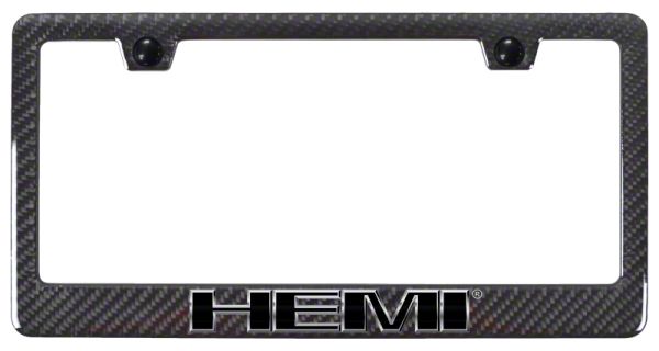 HEMI Carbon Fiber License Plate Frame; Chrome (Universal; Some Adaptation May Be Required)