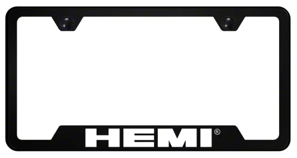 HEMI Notched License Plate Frame; White (Universal; Some Adaptation May Be Required)