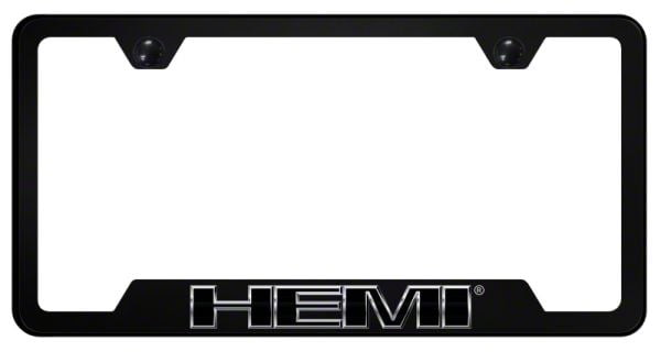 Description. Notched frame design featuring a wide bottom with gracefully notched corners. Exceptional in quality, design and value, these Black UV printed polycarbonate license frames are manufactured using excellent materials and workmanship. Includes matching black theft deterrent caps to conceal unsightly hardware. Proudly manufactured in the USA and backed by a lifetime warranty against flaws in materials or workmanship. Product dimensions: 6.25 Inches (Height) x 12.25 Inches (Width).