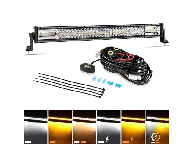 Versatile Illumination. Illuminate your path with the Auxbeam 32-Inch Straight LED Light Bar; White and Amber, a versatile lighting solution for any off-road adventure or demanding driving condition. Designed to fit a variety of vehicles, this light bar is an essential accessory for enhancing visibility and safety. The LEDs are energy-efficient, ensuring long-lasting performance without draining your vehicle's battery. Built to withstand harsh conditions, the Light Bar features a durable aluminum housing and a toughened glass lens. Its waterproof, dustproof, and shockproof design ensures it can handle the rigors of off-road use and extreme weather.