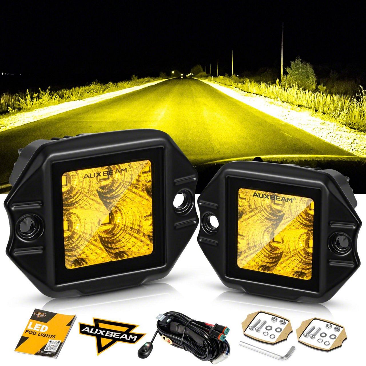 High-Visibility Lighting Upgrade. The Auxbeam 3.50-Inch Flush Mount Amber LED Pod Light delivers powerful flood beam illumination ideal for off-road and auxiliary lighting needs. Designed to enhance visibility in low light and inclement weather conditions, this LED pod light provides long-lasting, efficient lighting performance in a compact and durable housing. It's an excellent choice for drivers looking to add functional style and safety to their vehicle.