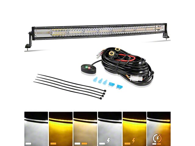Illuminating Your Path with Versatility. The Auxbeam 42-Inch Curved LED Light Bar is an essential upgrade for any vehicle, enhancing visibility on both roads and rugged off-road trails. This light bar's unique curved design provides a wide range of illumination, ensuring a safer driving experience in various conditions. Featuring dual color output in white and amber, it offers flexibility to adapt to different environments, whether you're navigating through fog, rain, or darkness.