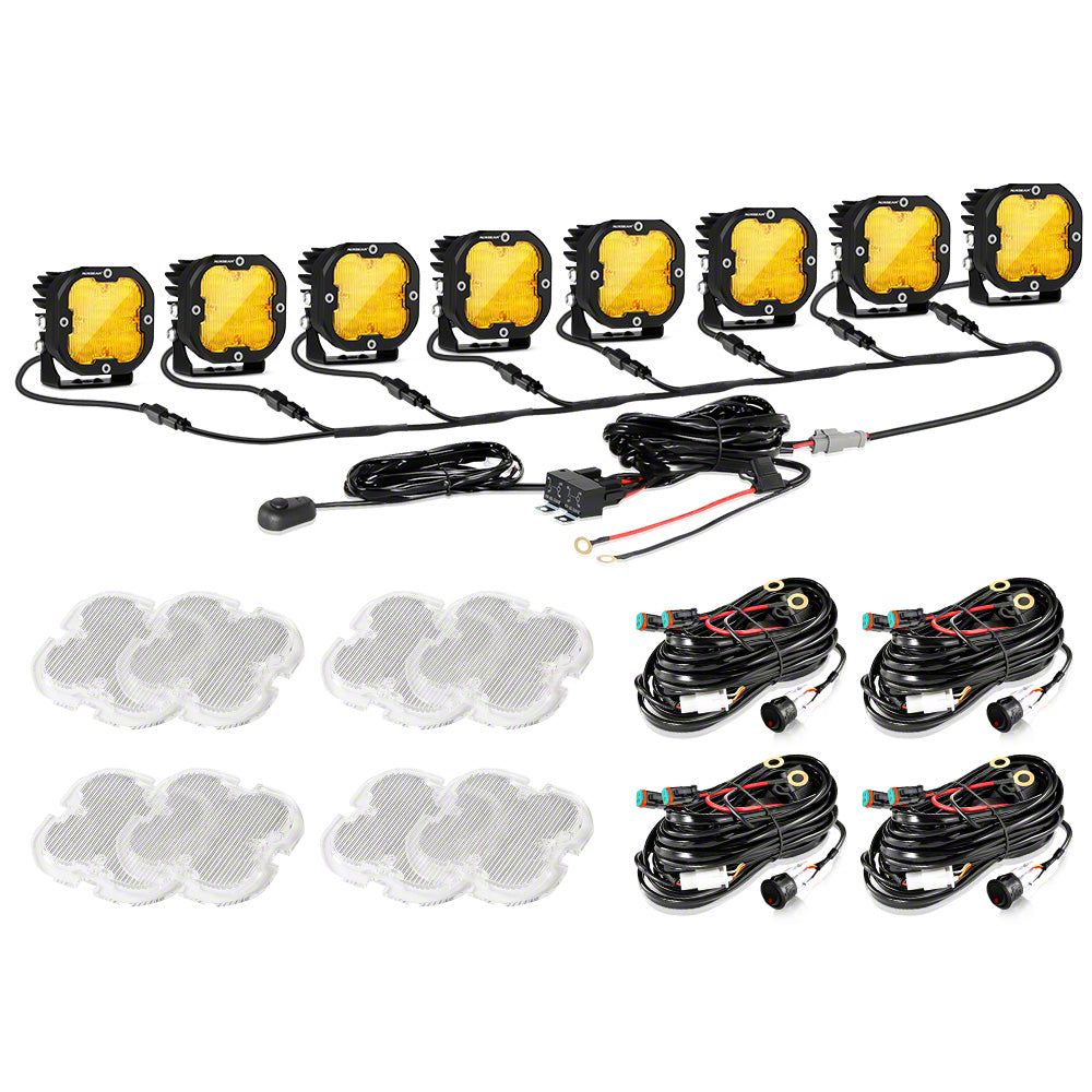 High-Performance LED Lighting. The Auxbeam XP-ULTRA Series LED Pod Lights deliver exceptional illumination for your off-road adventures and demanding environments. Designed with both amber and white flood beam options, this lighting set provides versatile lighting coverage while enhancing visibility in low-light and inclement conditions. With eight 3-inch pods powered by premium LED chips, this product ensures you’re always equipped for challenging terrain.